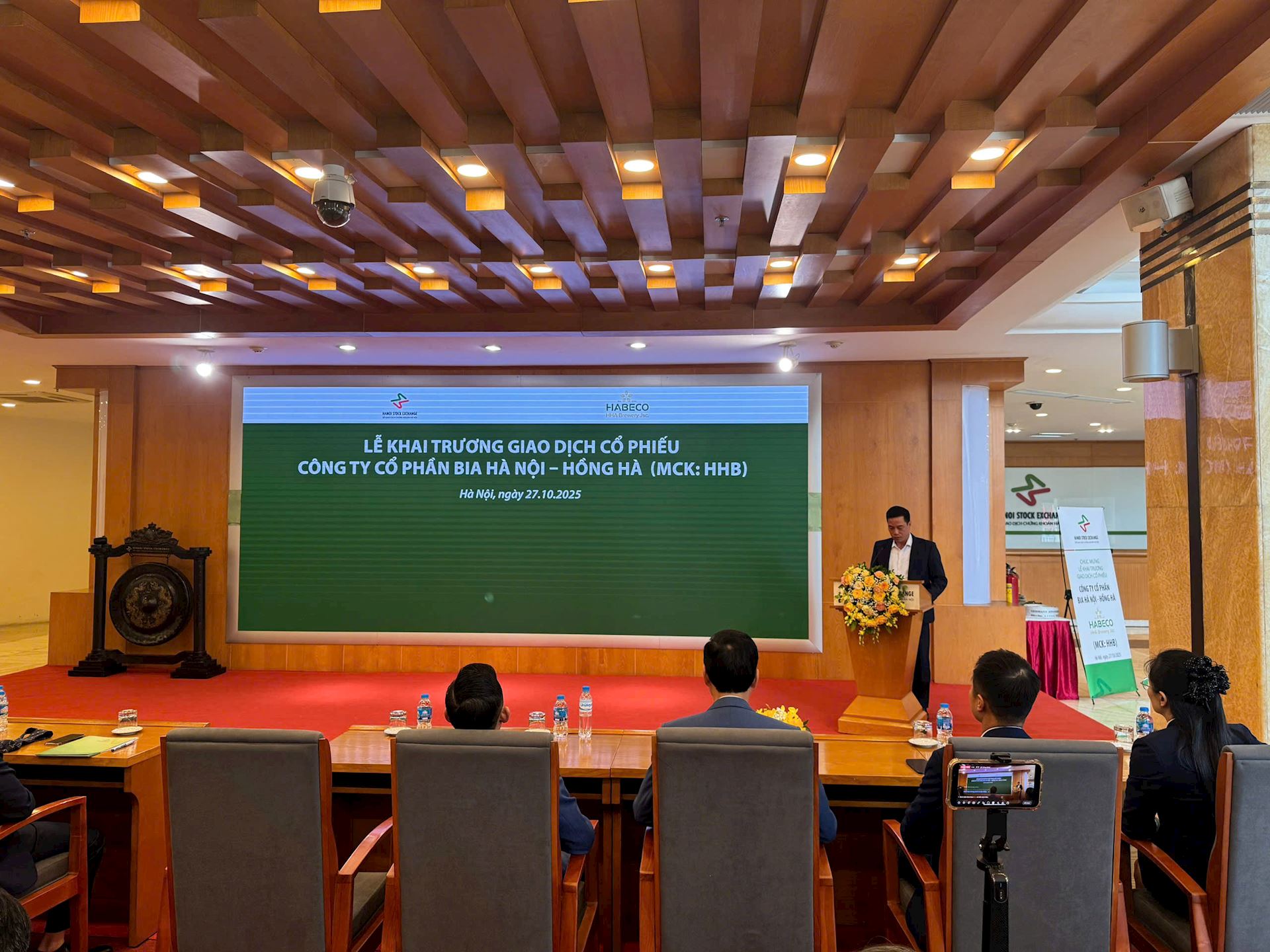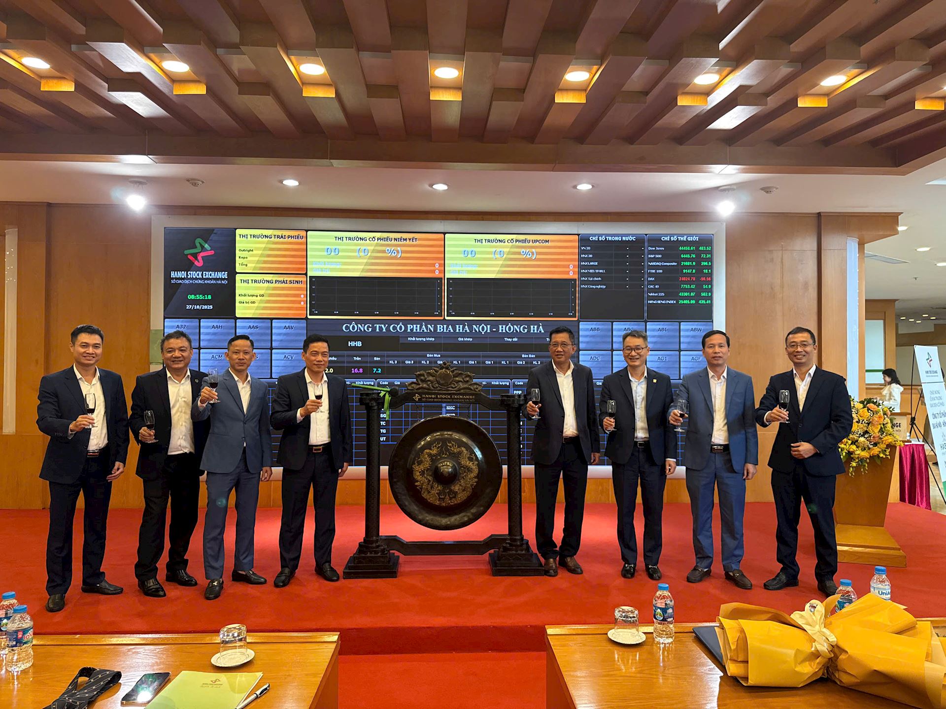 Sáng 27/10/2025, tại Sở Giao dịch Chứng khoán Hà Nội (HNX), Công ty Cổ phần Bia Hà Nội – Hồng Hà chính thức tổ chức Lễ khai mạc phiên giao dịch đầu tiên cổ phiếu của doanh nghiệp, đánh dấu bước ngoặt quan trọng trong quá trình phát triển và hội nhập trên thị trường chứng khoán Việt Nam.