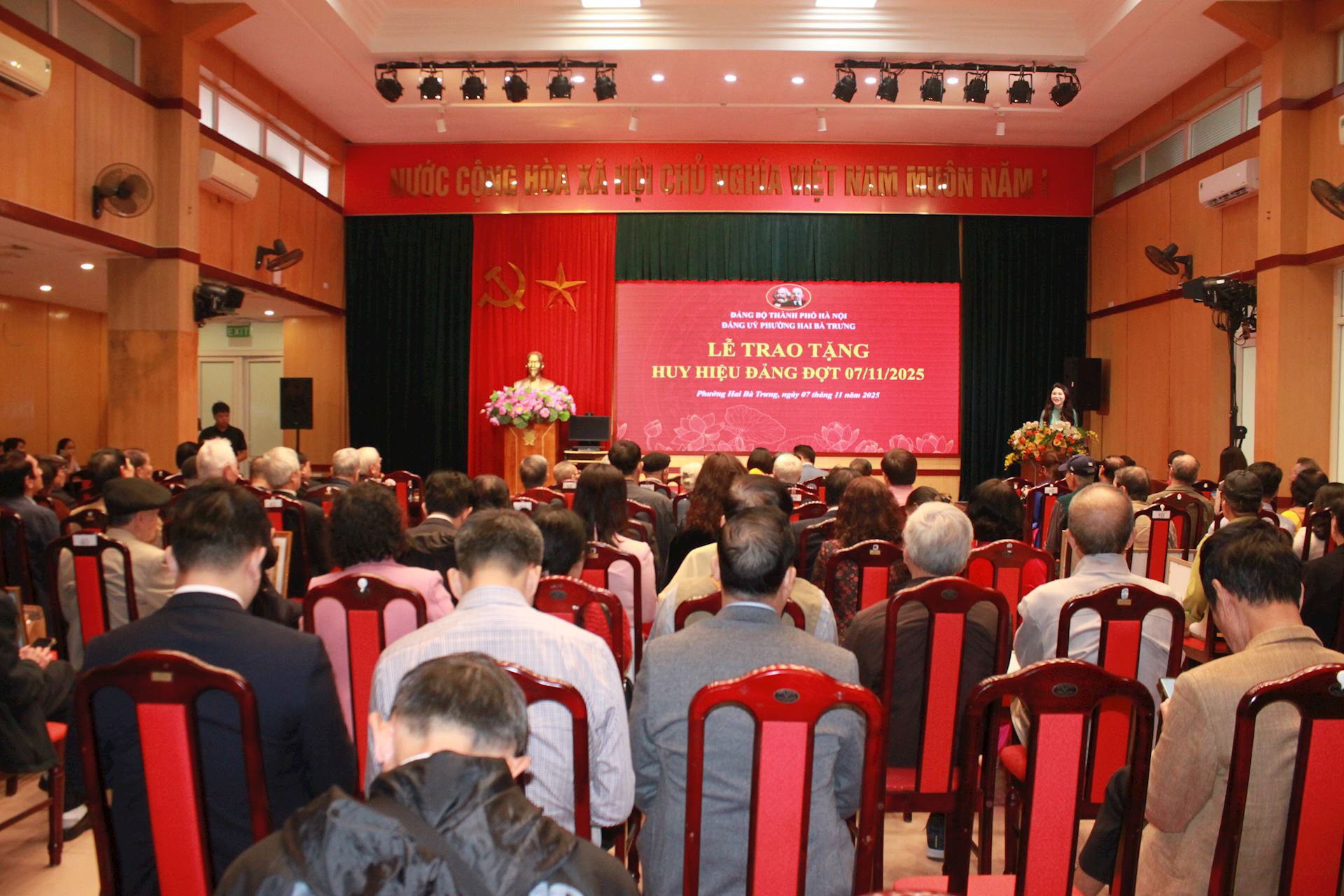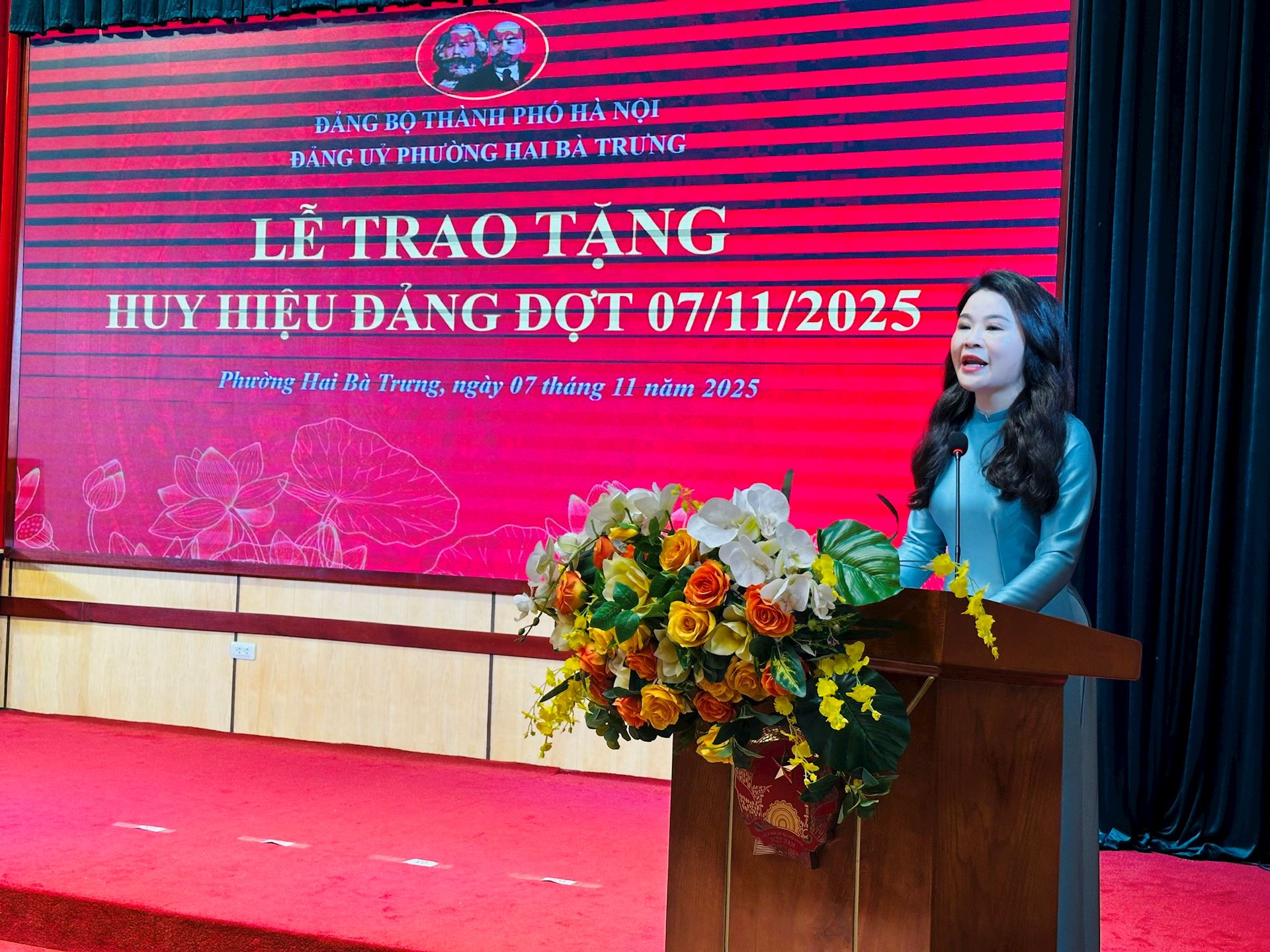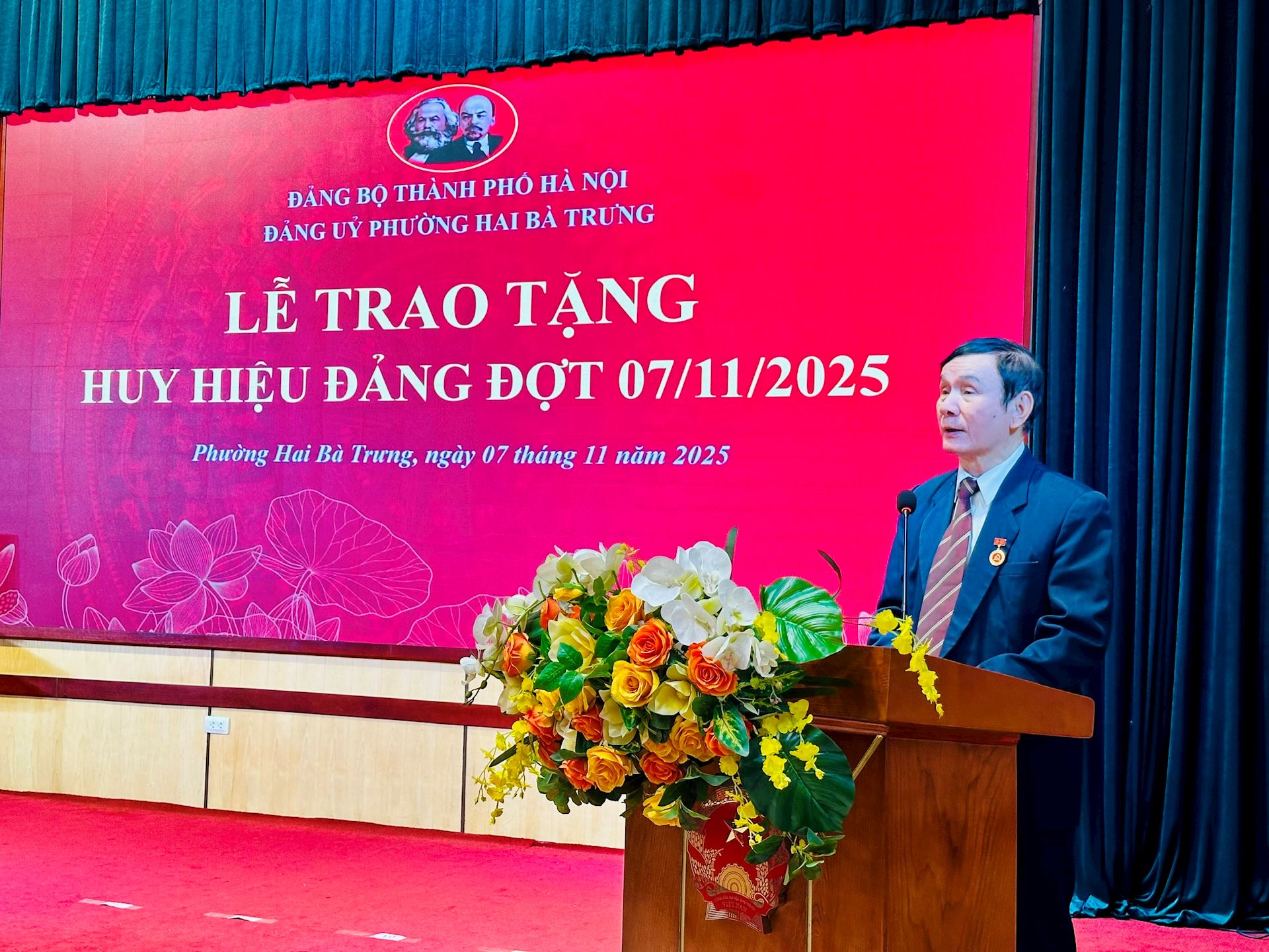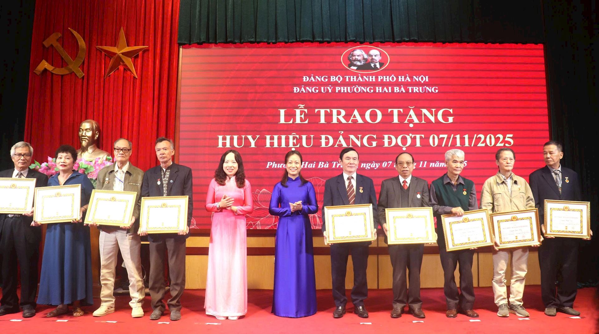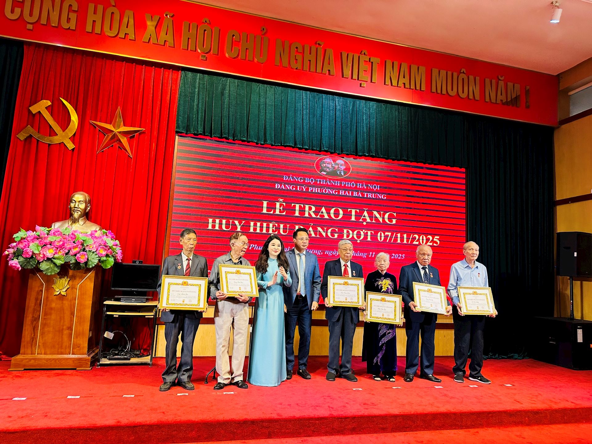 Trong không khí trang trọng và phấn khởi, hướng tới kỷ niệm 108 năm Cách mạng Tháng Mười Nga vĩ đại (07/11/1917 – 07/11/2025) và chào mừng thành công Đại hội đại biểu Đảng bộ thành phố Hà Nội lần thứ XVIII nhiệm kỳ 2025-2030, Đảng bộ phường Hai Bà Trưng đã long trọng tổ chức Lễ trao tặng Huy hiệu Đảng đợt 07/11/2025 cho 83 đồng chí đảng viên ưu tú thuộc Đảng bộ phường vào sáng ngày 07/11.