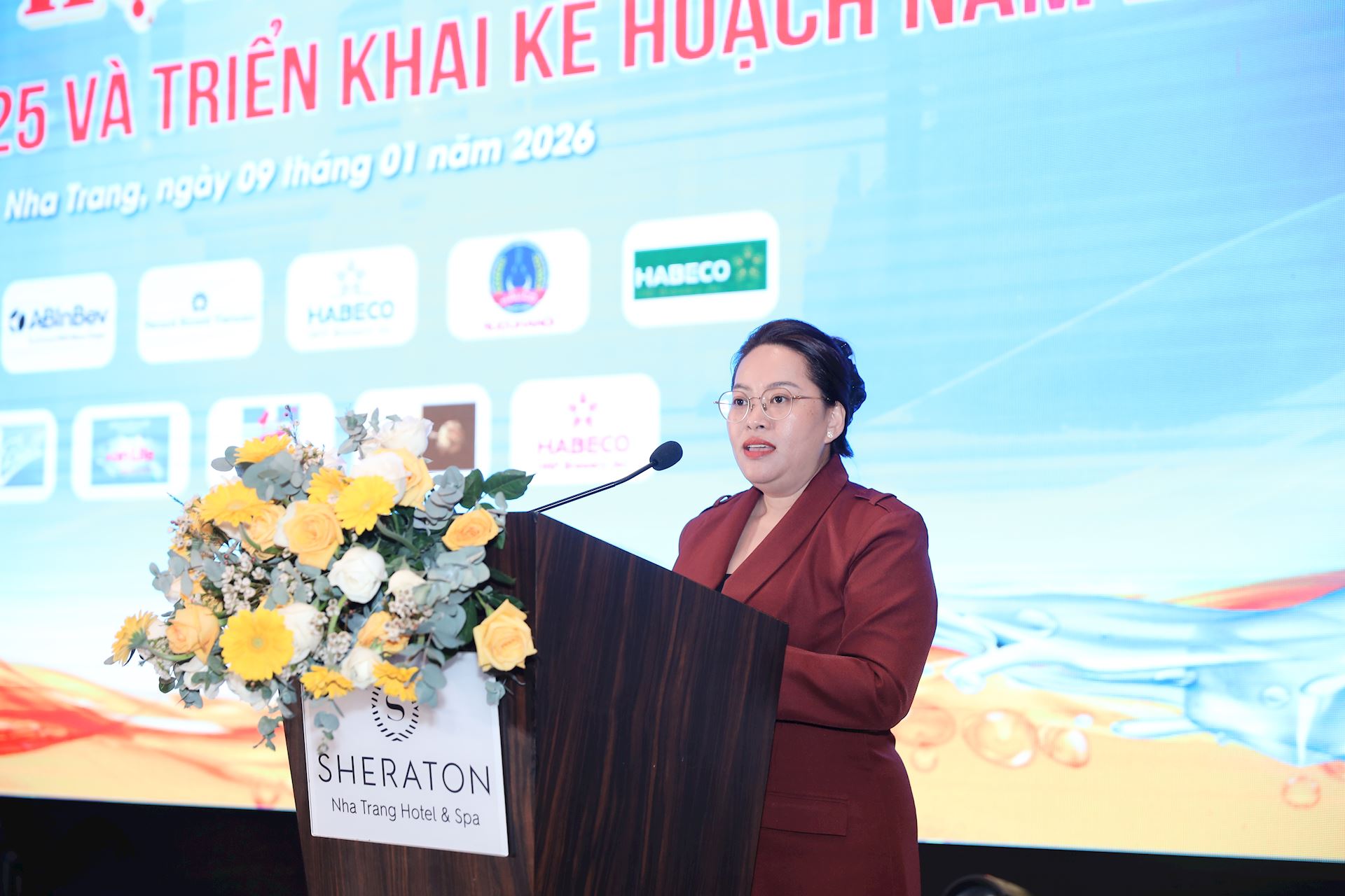 Bà Trịnh Thị Vân Giang - Giám đốc Đối ngoại, Phát triển bền vững và Truyền thông, Pernod Ricard Việt Nam bày tỏ lời cảm ơn tới Hiệp hội vì sự đồng hành và hỗ trợ hiệu quả dành cho doanh nghiệp trong suốt năm 2025. Theo bà, sự phối hợp chặt chẽ giữa Hiệp hội và cộng đồng doanh nghiệp đã góp phần mang lại nhiều kết quả quan trọng, qua đó bảo vệ lợi ích chung của ngành và thúc đẩy định hướng phát triển bền vững.