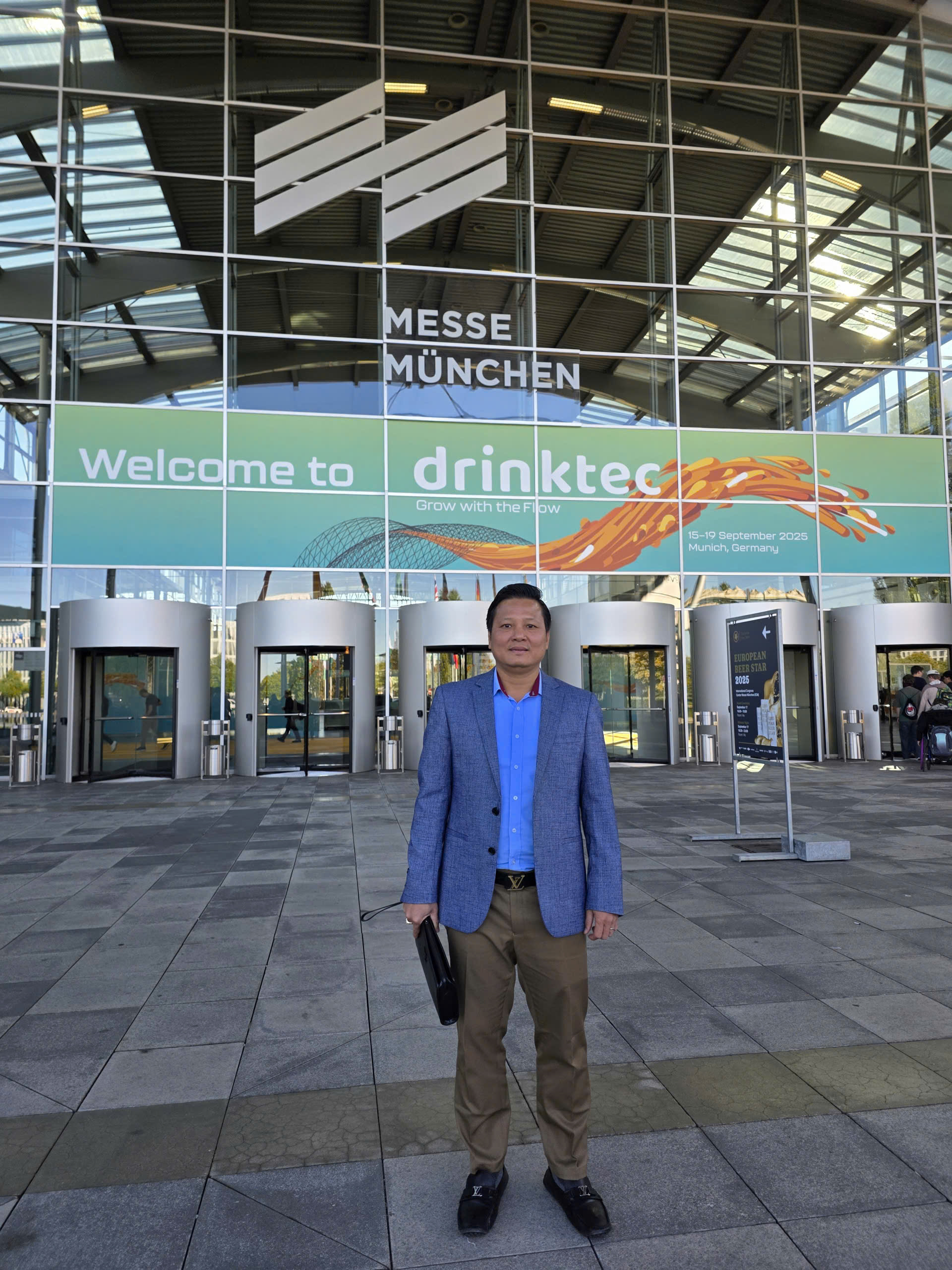 Tác giả tại trước sảnh Triển lãm Drinktec 2025.