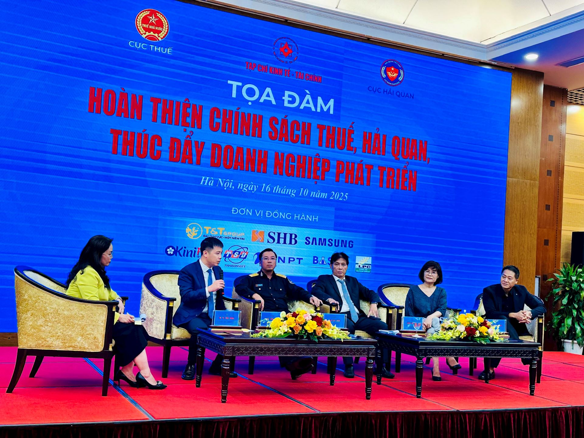 Sáng 16/10, tại Hà Nội, Tạp chí Kinh tế - Tài chính (Bộ Tài chính) phối hợp với Cục Thuế và Cục Hải quan tổ chức Tọa đàm “Hoàn thiện chính sách thuế, hải quan thúc đẩy doanh nghiệp phát triển”.