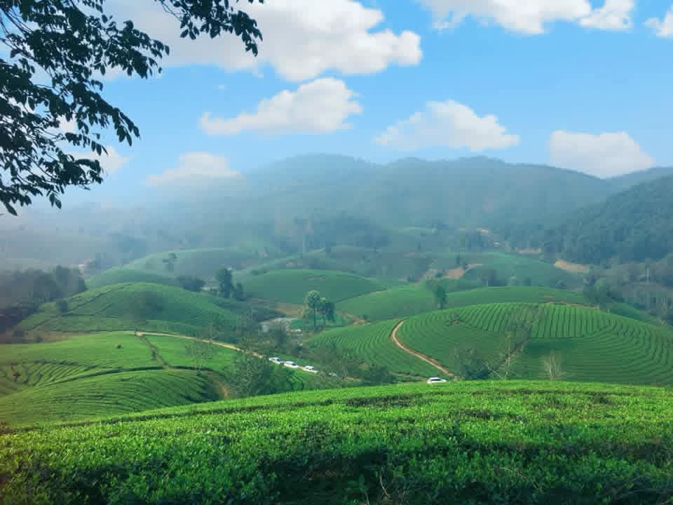 5 giờ sáng, tôi khởi hành hướng về Tân Sơn khi không gian còn mờ ảo. Sợ lạc giữa những lối mòn vào bản, tôi chọn đồi chè Long Cốc làm điểm hẹn bạn cho chắc chắn. Giây phút gặp lại, một cái bắt tay thật chặt và những nụ cười rạng rỡ tan trong nắng sớm đã xua tan mọi mệt mỏi trong tôi. Sau cái ôm nồng ấm, các bạn dẫn tôi lên đồi chè tham quan. Lúc này bình minh vừa hé, tấm màn sương mờ ảo bắt đầu tan dần, để lộ ra khung cảnh kỳ vĩ đến ngỡ ngàng. Những “ốc đảo” chè xanh mướt, tròn trịa như những chiếc bát úp khổng lồ, xếp lớp, trôi bồng bềnh giữa biển mây. Tất cả hòa quyện, vẽ nên một bức tranh sơn thủy hữu tình, tạo nên một “vịnh Hạ Long trên cạn” thực sự làm say lòng người lữ khách. Chúng tôi cùng nhau tản bộ trên những lối mòn nhỏ quanh co, hít hà mùi nhựa chè tươi mới, cảm nhận sự giao thoa tuyệt vời giữa thiên nhiên và bàn tay cần mẫn của biết bao con người. Bạn tôi chỉ tay về phía những cô gái Mường đang thoăn thoắt hái chè, giải thích cho tôi nghe về quy trình chế biến, về cách tạo nên hương vị trà đặc trưng của vùng đất Tổ.