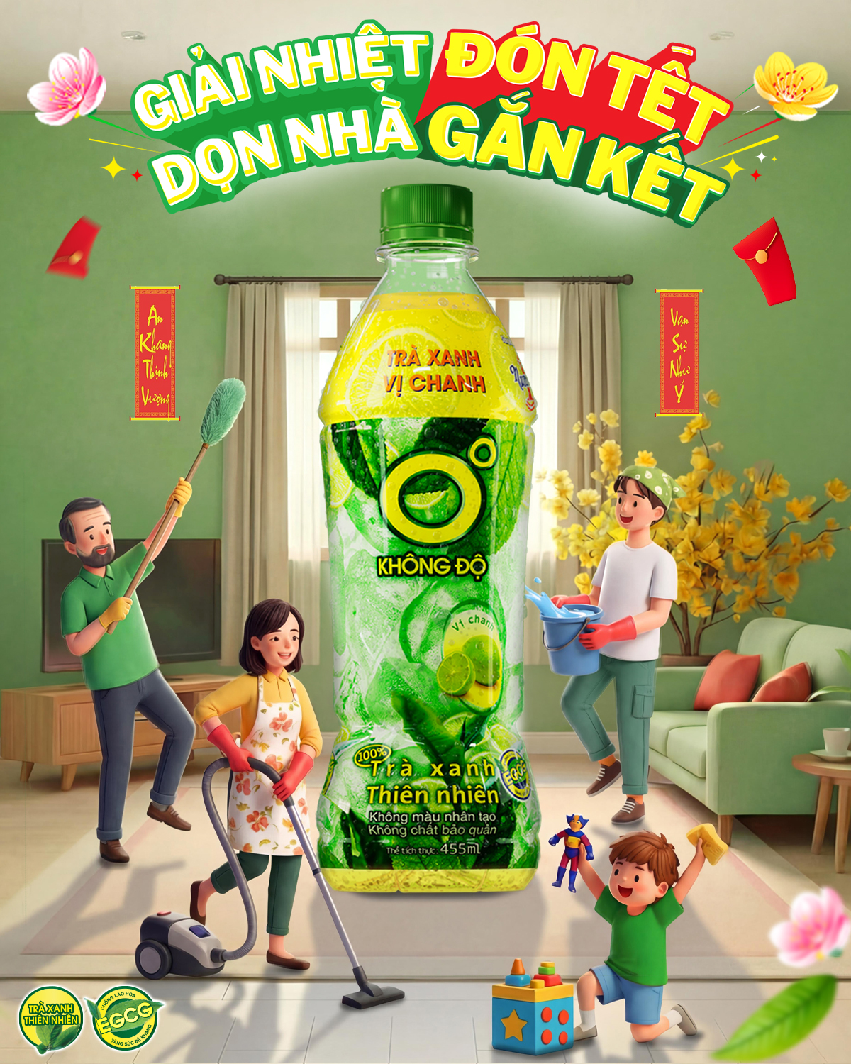 Khác với cách gợi nhắc Tết quen thuộc qua countdown hay mùi bánh chưng, TVC “Quốc tế dọn nhà” của Trà Xanh Không Độ (sản phẩm của Tập đoàn Tân Hiệp Phát) mở ra mùa Tết từ một lát cắt rất đời: những ngày cuối năm tất bật lau dọn, danh sách việc nhà kéo dài và cảm giác mệt mỏi lặp lại mỗi độ xuân về. Chính những trải nghiệm quen thuộc nhưng ít khi được gọi tên ấy đã trở thành chất liệu trung tâm của chiến dịch.