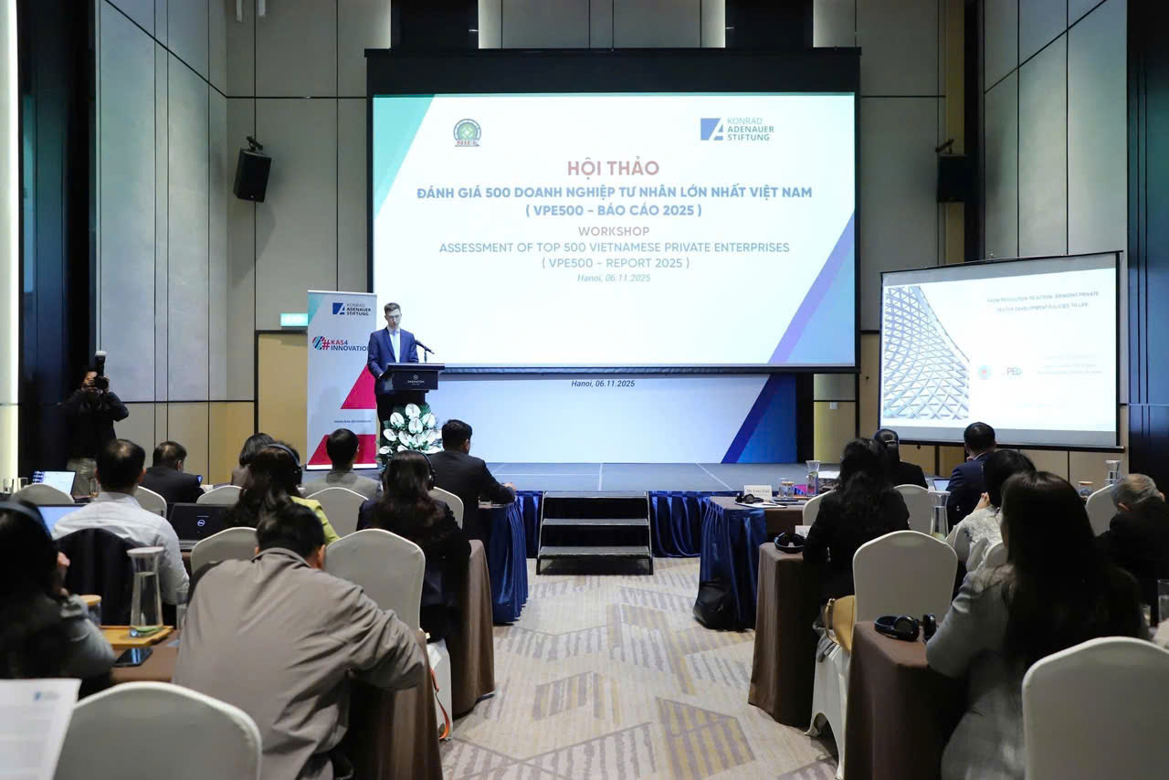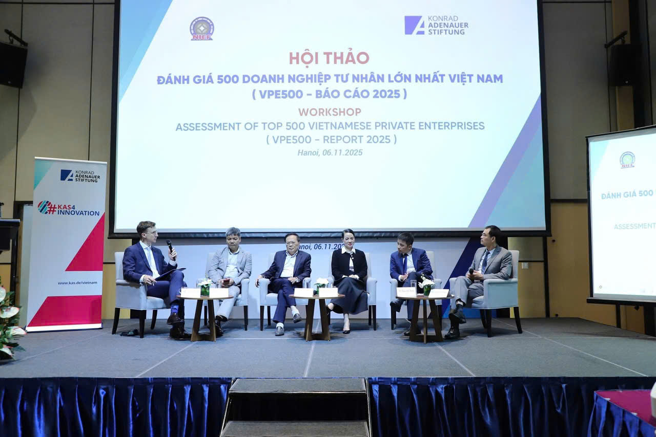 Hội thảo có sự tham gia của các chuyên gia kinh tế có uy tín, đại diện các cơ quan, hiệp hội, doanh nghiệp. Tại Hội thảo, bà Trịnh Thị Hương - Phó cục trưởng Cục Phát triển doanh nghiệp tư nhân và kinh tế tập thể (Bộ Tài chính) và TS. Trần Toàn Thắng - Trưởng ban Quốc tế và Chính sách hội nhập đã trình bày báo cáo “Từ nghị quyết đến hành động, đưa chính sách phát triển kinh tế tư nhân vào cuộc sống” và báo cáo 500 doanh nghiệp tư nhân lớn nhất Việt Nam (VPE500 - Báo cáo 2025). Hai báo cáo đã cung cấp bức tranh toàn cảnh khu vực doanh nghiệp tư nhân Việt Nam về quy mô, vai trò, động lực phát triển cũng như các chính sách đã được hoàn thiện để thúc đẩy khu vực này trở thành một trong những động lực quan trọng nhất của nền kinh tế. Đặc biệt là phiên thảo luận bàn tròn về giải pháp phát triển doanh nghiệp tư nhân lớn với sự tham gia đã mang đến góc nhìn thẳng thắn và cởi mở. Đó là các chuyên gia như ông Đậu Anh Tuấn - Phó Tổng thư ký Liên đoàn Thương mại và Công nghiệp Việt Nam (VCCI), ông Nguyễn Đình Cung - Nguyên Viện trưởng Viện Nghiên cứu quản lý kinh tế trung ương, bà Bùi Kim Thủy - Phó Chủ tịch President Club, Thành viên Hội đồng cố vấn Harvad - Asia Pacific, ông Nguyễn Bá Hùng - Chuyên gia kinh tế trưởng của Ngân hàng Phát triển châu Á (ACD) tại Việt Nam... Điều hành dẫn dắt phiên thảo luận là ông Nguyễn Vinh Quang - Phó Viện trưởng Viện Chiến lược và Chính sách kinh tế - tài chính (Bộ Tài chính) và ông Lewe Paul - Trưởng đại diện KAS tại Việt Nam.
