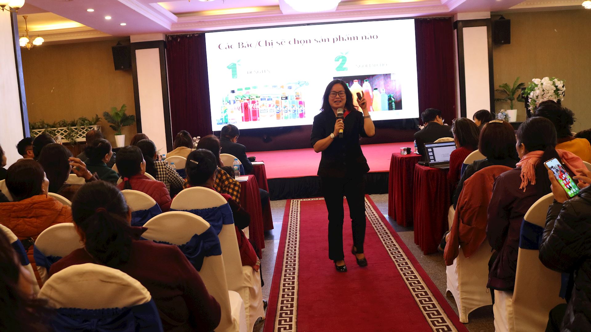 Chia sẻ tại Hội thảo, bà Nguyễn Thanh Hồng, Phòng Giáo dục sức khỏe, Trung tâm Truyền thông - Giáo dục sức khỏe Trung ương đã truyền đạt thông tin bổ ích về “Hướng dẫn cách đọc nhãn sản phẩm và đồ uống” và tạo ra không khí thảo luận sôi nổi với nhiều câu hỏi thú vị, thiết thực dành cho các đại biểu nữ.