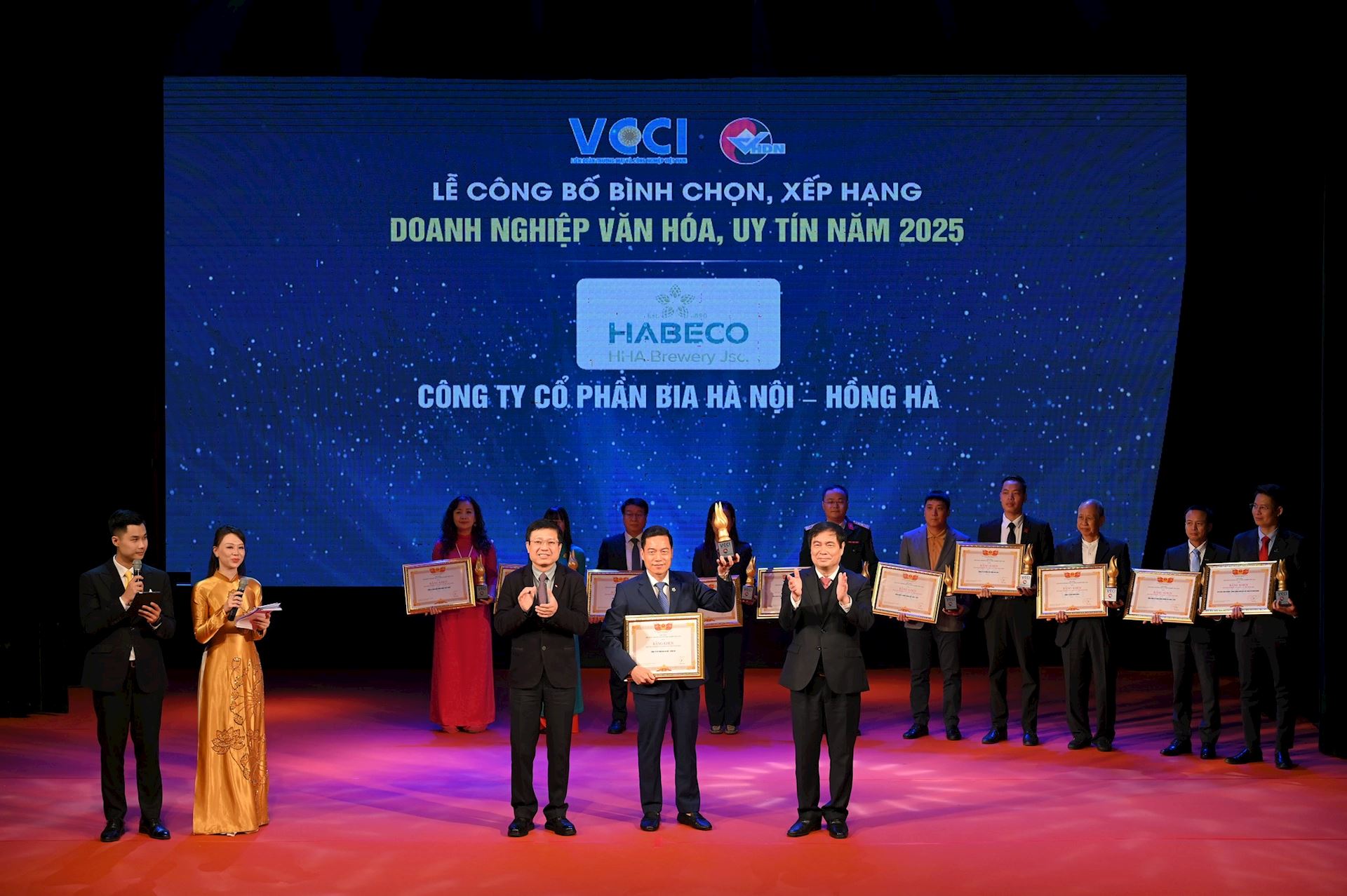 Công ty CP Bia Hà Nội – Hồng Hà vinh danh “Doanh nghiệp Văn hóa, Uy tín năm 2025” do Liên đoàn Thương mại và Công nghiệp Việt Nam (VCCI) tổ chức. ghi nhận xứng đáng cho quá trình xây dựng và phát triển doanh nghiệp gắn liền với văn hóa kinh doanh, đạo đức nghề nghiệp, uy tín thương hiệu và trách nhiệm xã hội, phù hợp với định hướng phát triển bền vững của cộng đồng doanh nghiệp Việt Nam trong thời kỳ hội nhập và đổi mới.