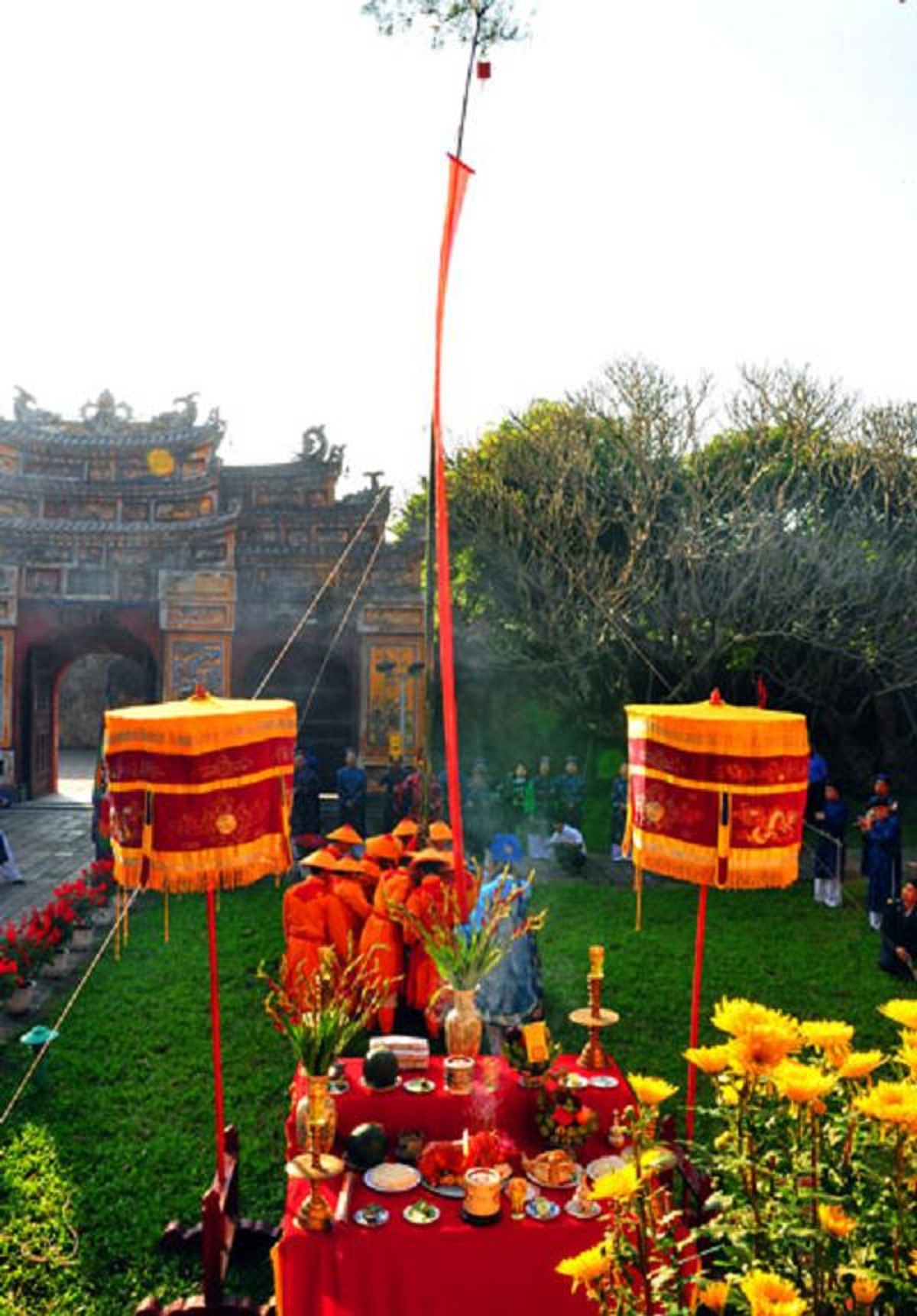 Hiện nay, những lễ nghi trong ngày Tết thường được người Huế chú trọng, duy trì thực hiện rất trang nghiêm, bài bản và có phần cầu kỳ như cúng ông Táo, cúng tổ nghề, cúng tất niên, lễ lên nêu, rước ông bà về ăn Tết, cúng Giao thừa… Bên cạnh đó, nét văn hóa truyền thống Tết đặc trưng của Huế không thể tìm thấy ở bất cứ vùng miền nào là hoa giấy Thanh Tiên.