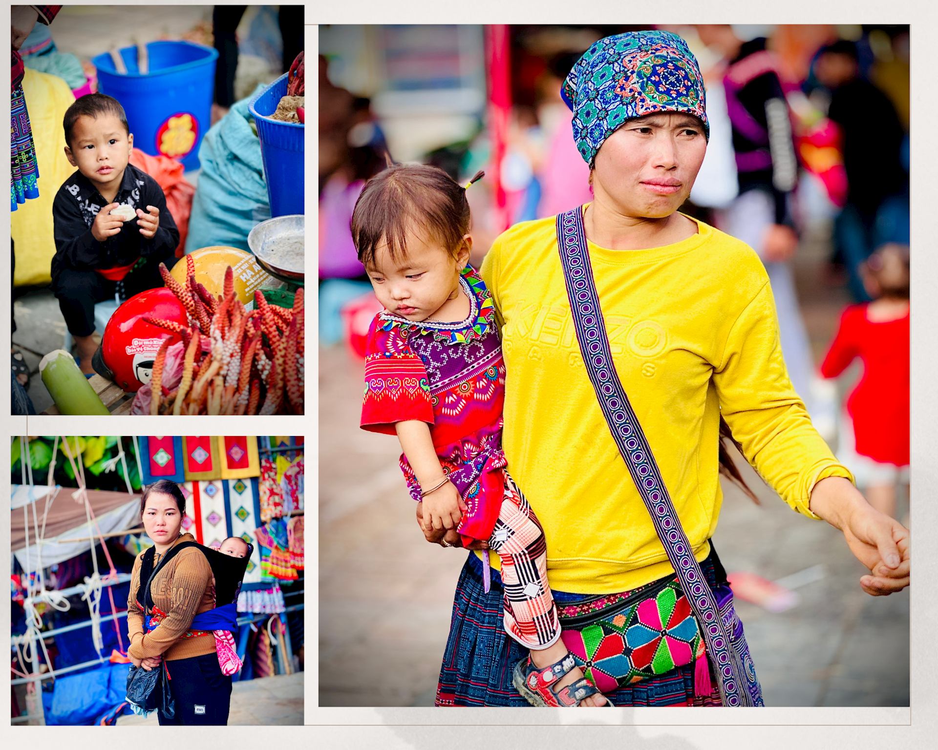 Những em nhỏ theo mẹ xuống chợ