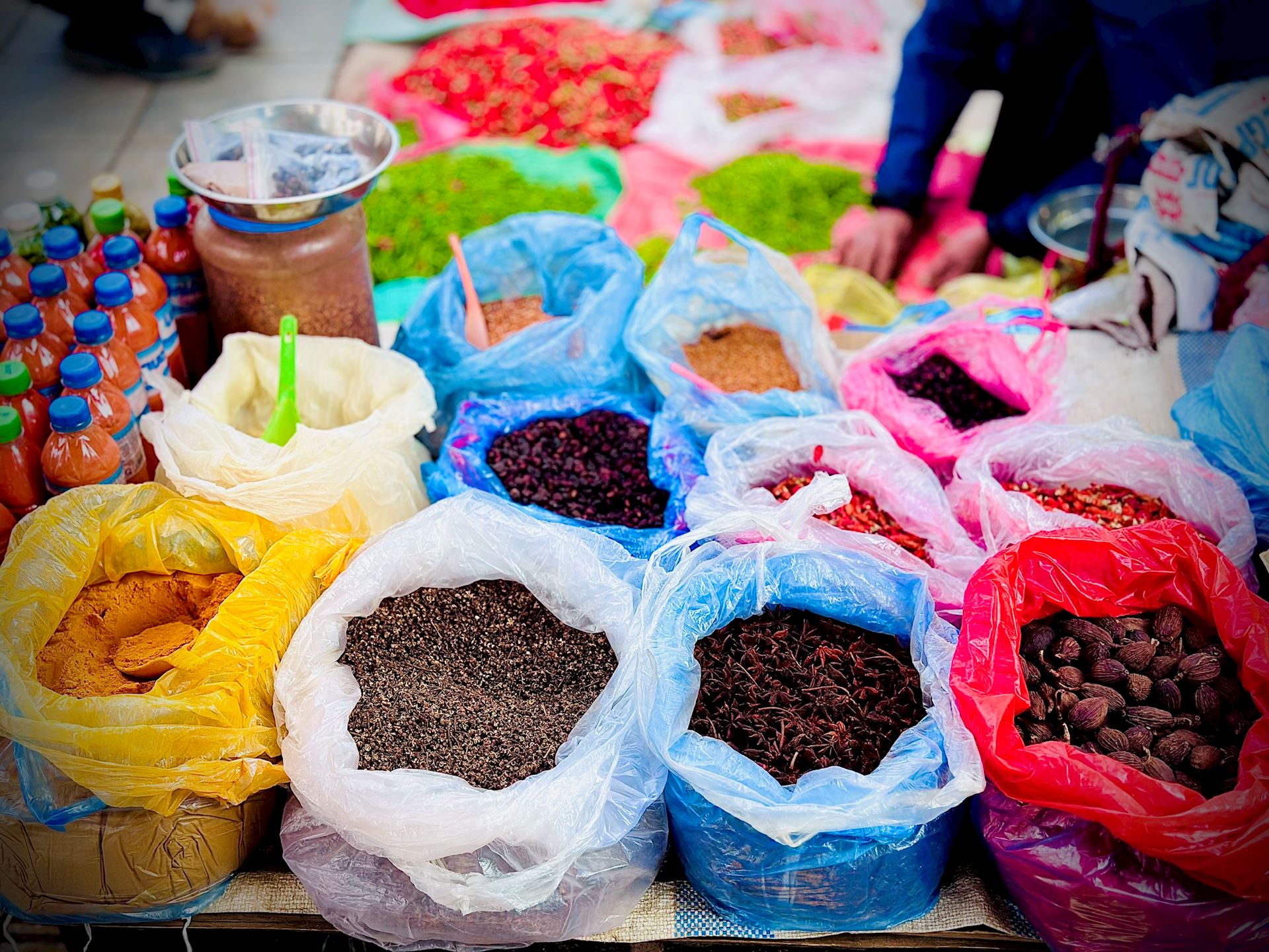 Chợ phiên có đủ loại rau củ quả tươi, các loại hạt, gia vị quế hồi…