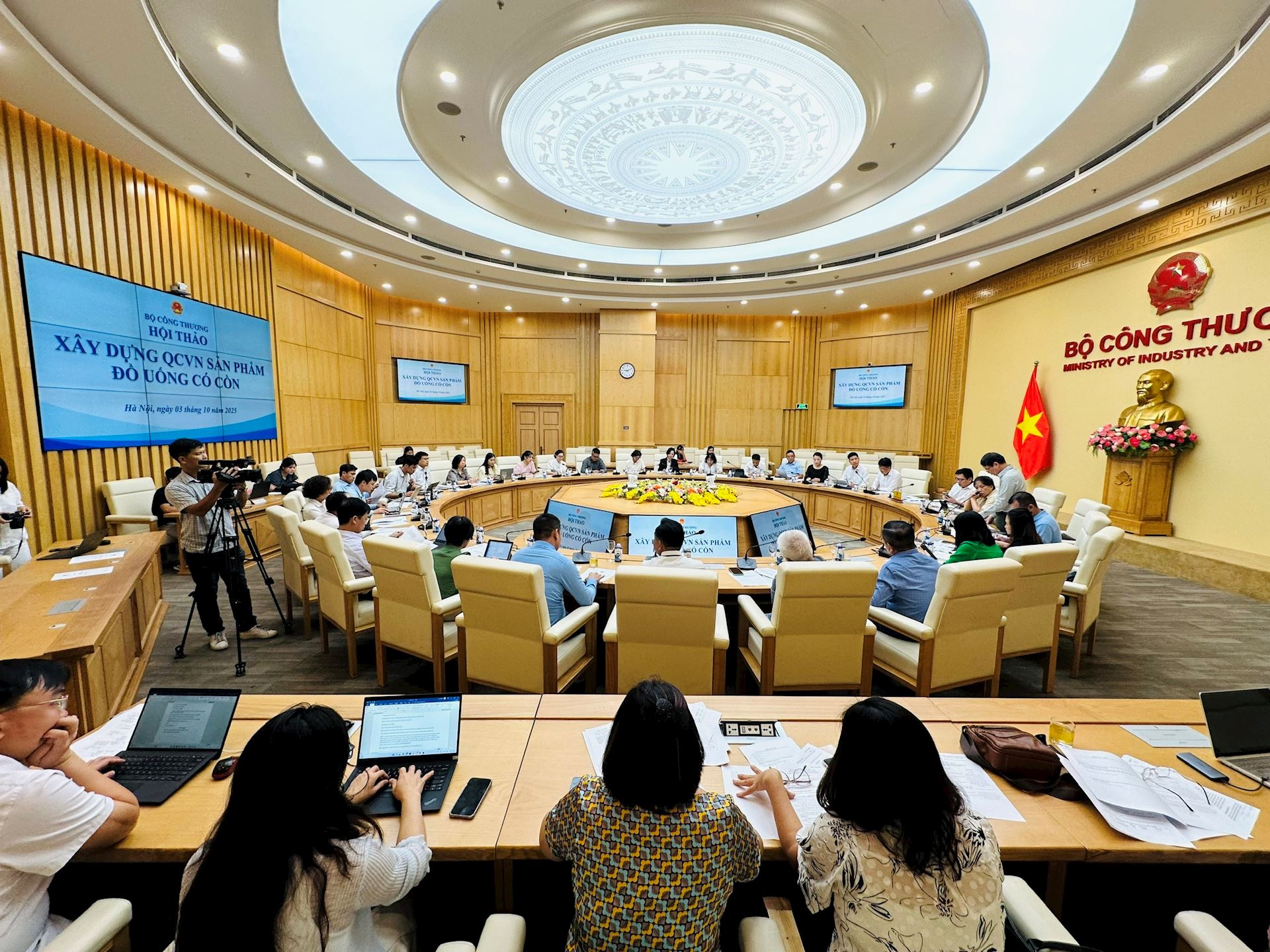 Nhiều doanh nghiệp đồ uống tham gia góp ý tại Hội thảo Xây dựng QCVN sản phẩm đồ uống có cồn do Cục Đổi mới sáng tạo, Chuyển đổi xanh và Khuyến công (Bộ Công Thương) tổ chức ngày 03/10.
